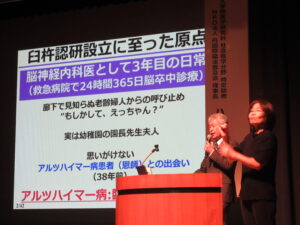 大分県臼杵市を舞台に、松原先生が取り組んでこられた研究をご紹介いただきました。今後の認知症医療の予防・治療展望に関する貴重なお話を伺うことができました。