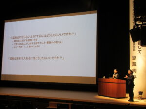 令和8年2月14日(土)、やぶ市民交流広場において、第11回市民講座「養」を開催しました。法人設立2周年の節目となる今回の市民講座は、「認知症に備え 共に歩もう 幸せな未来へ」をスローガンに掲げ、お二人の先生に登壇いただきました。